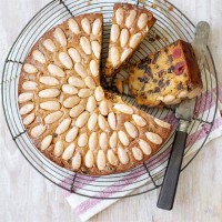 A traditional Scottish fruitcake with cherries, sultanas, almonds, and a sweet glaze.